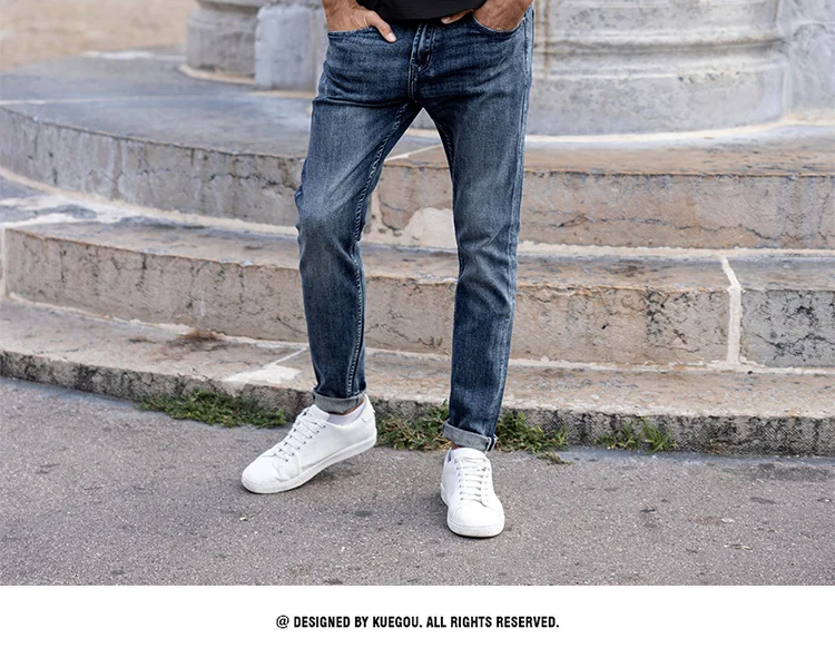 KUEGOU хлопчатобумажная одежда мужские рубашки стильное джинсовое п...