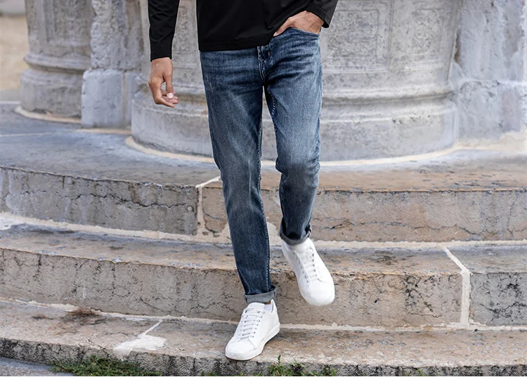 Мужская джинсовая рубашка с длинным рукавом KUEGOU, синяя джинсовая...