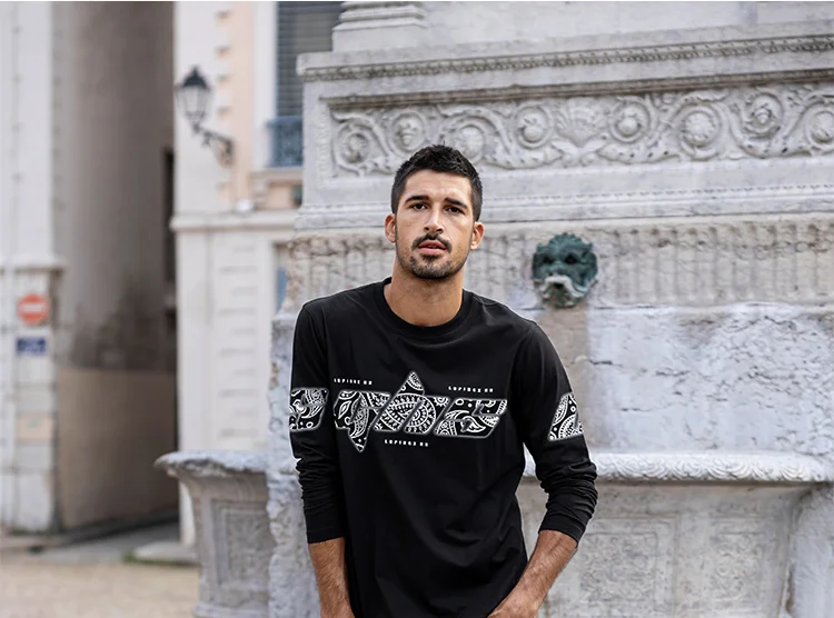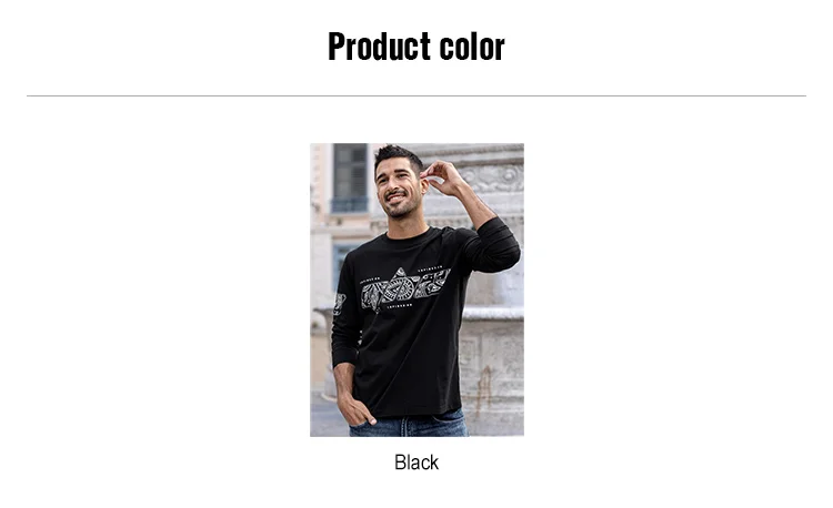 Мужская футболка с длинным рукавом KUEGOU, черная Винтажная футболк...