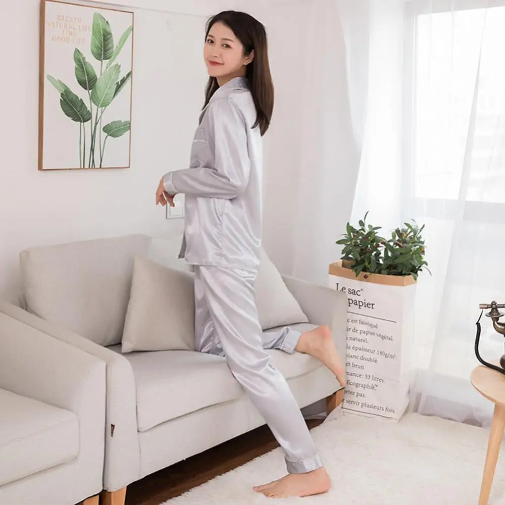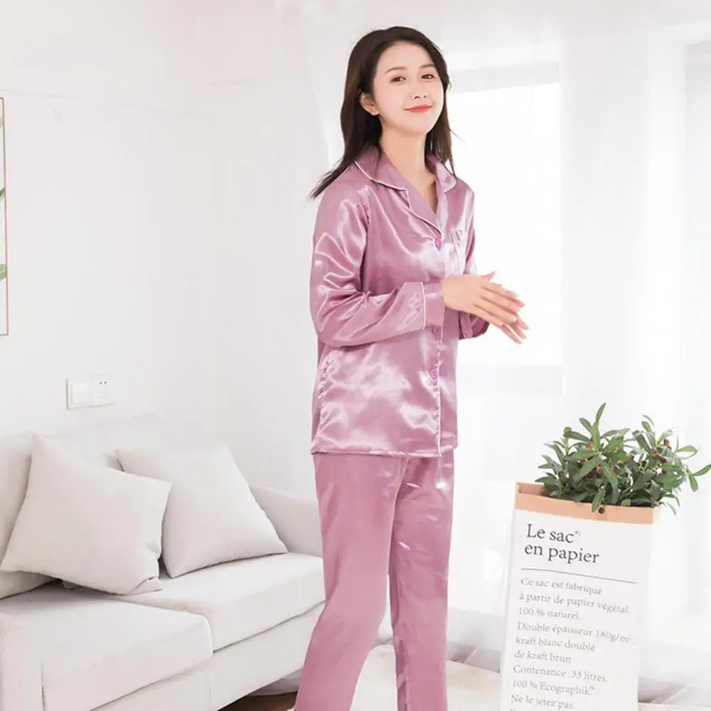 Женский Шелковый Атласный пижамный комплект, однотонная Пижама для ...