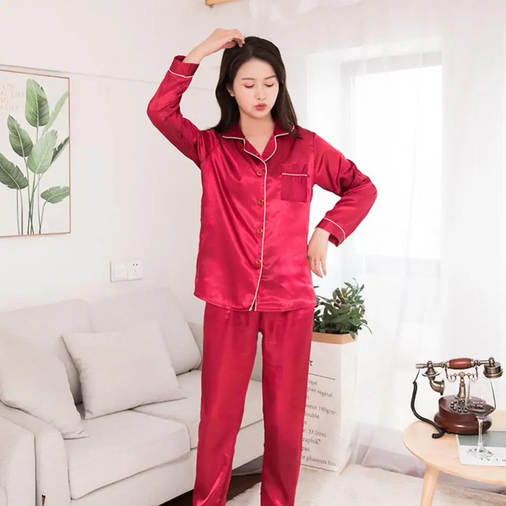 Женская шелковая атласная пижама, пижамный комплект с длинными рукавами, пижама, Пижамный костюм, женский пижамный комплект из двух предметов, домашняя одежда размера плюс