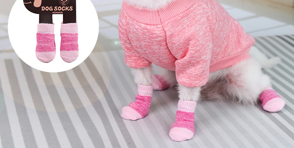 Носки для собак противоскользящие трикотажные теплые, 4 шт.комплект