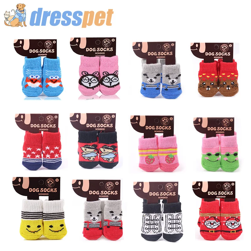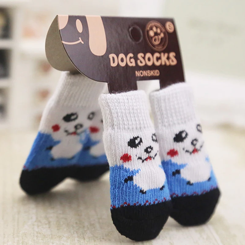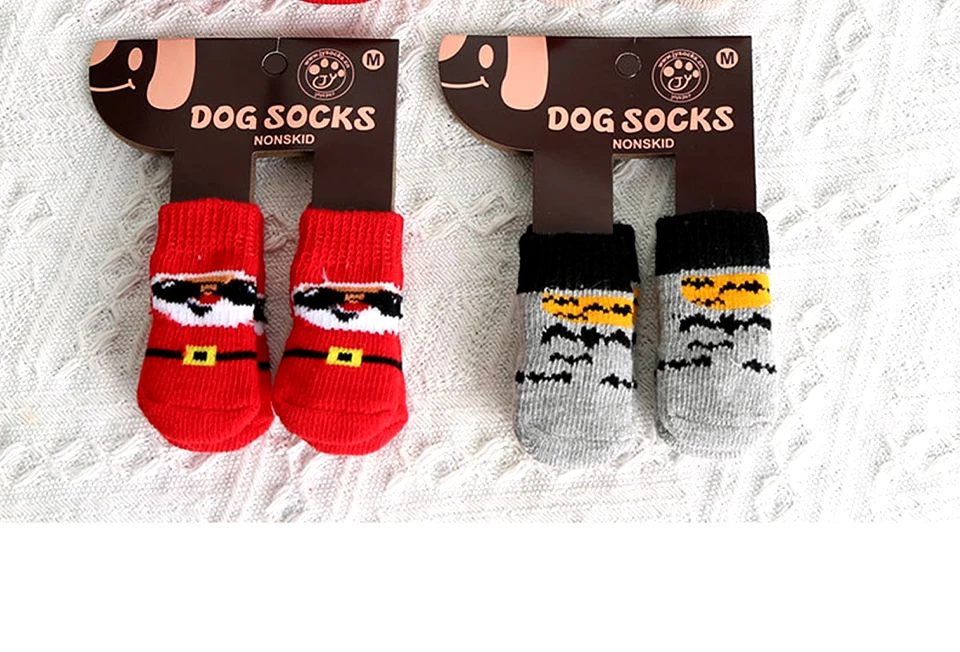 Носки для питомцев, для маленьких собак, резиновые, Нескользящие, с милым рисунком, рождественские носки, для щенков, кошек, для дома, теплые, для ног, хлопковые носки