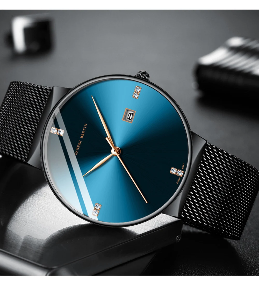 Часы Hannah Martin мужские наручные кварцевые, брендовые Роскошные повседневные водонепроницаемые модные тонкие
