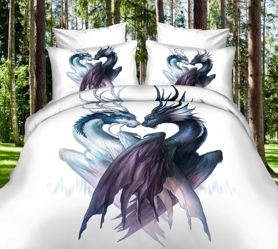 Комплект постельного белья с изображением дракона, одинарный, двойной, полноразмерный, Королевский, большого размера, набор постельного белья с изображением животных, Льва, волка, Комплект постельного белья для детской спальни с изображением героев мультфильмов, 008
