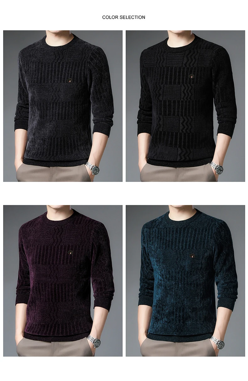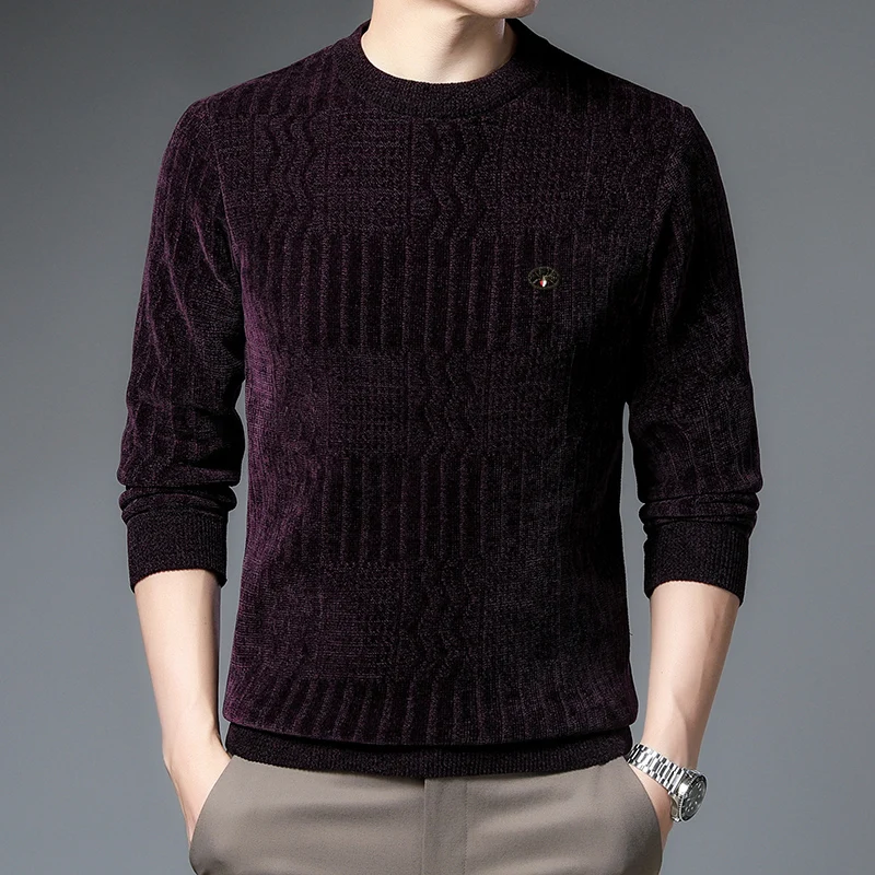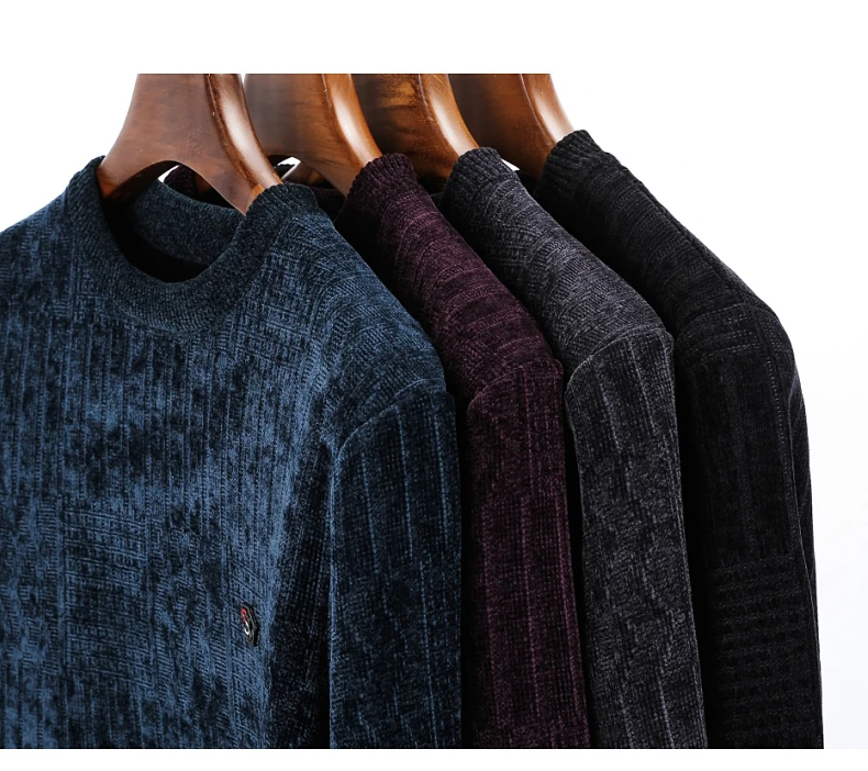 Свитер мужской зимний с флисовой подкладкой и круглым вырезом, Y382