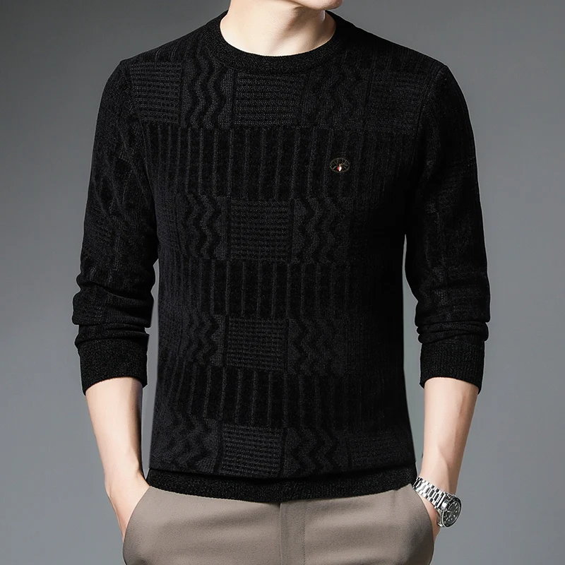 Мужской Мягкий трикотажный пуловер, повседневный приталенный теплый...