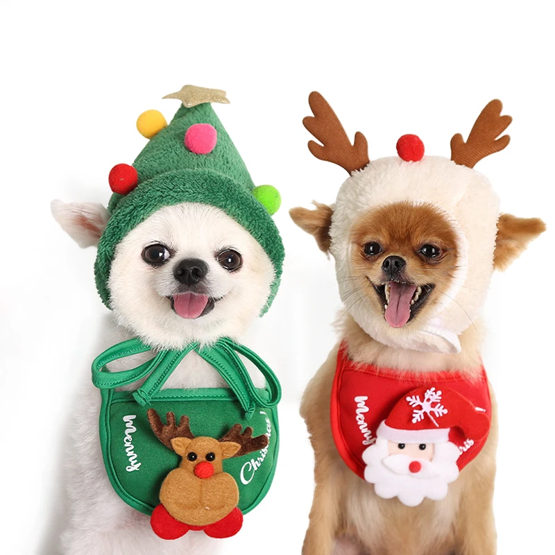 Red Green Christmas Dog Bandana Hat Scarf Bibs Suit