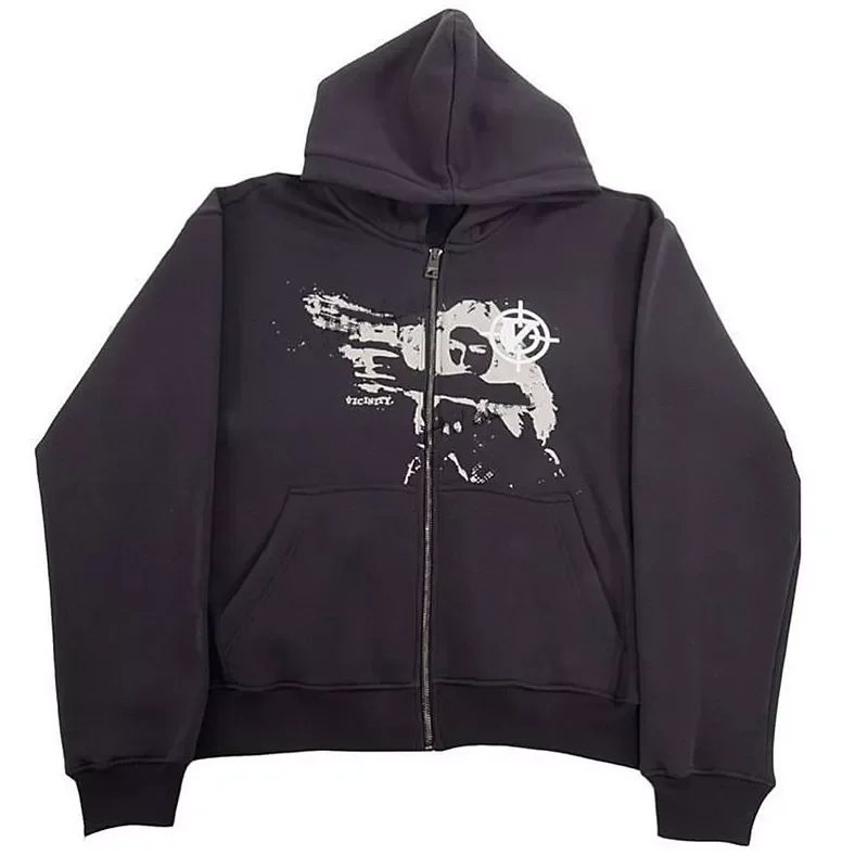 Черная толстовка с капюшоном на молнии и длинным рукавом, Y2k