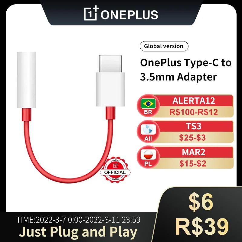 Оригинальный адаптер для наушников Oneplus с разъемом типа C на 3,5 мм, переходник для наушников, кабельный разъем для OnePlus 7, конвертер Usb-C 6T 7 Pro