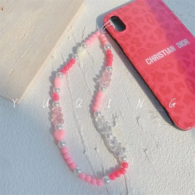 Милый браслет для мобильного телефона Ins, очаровательный розовый м...