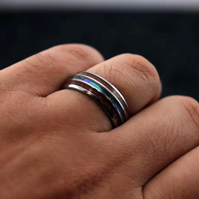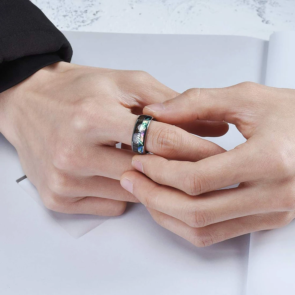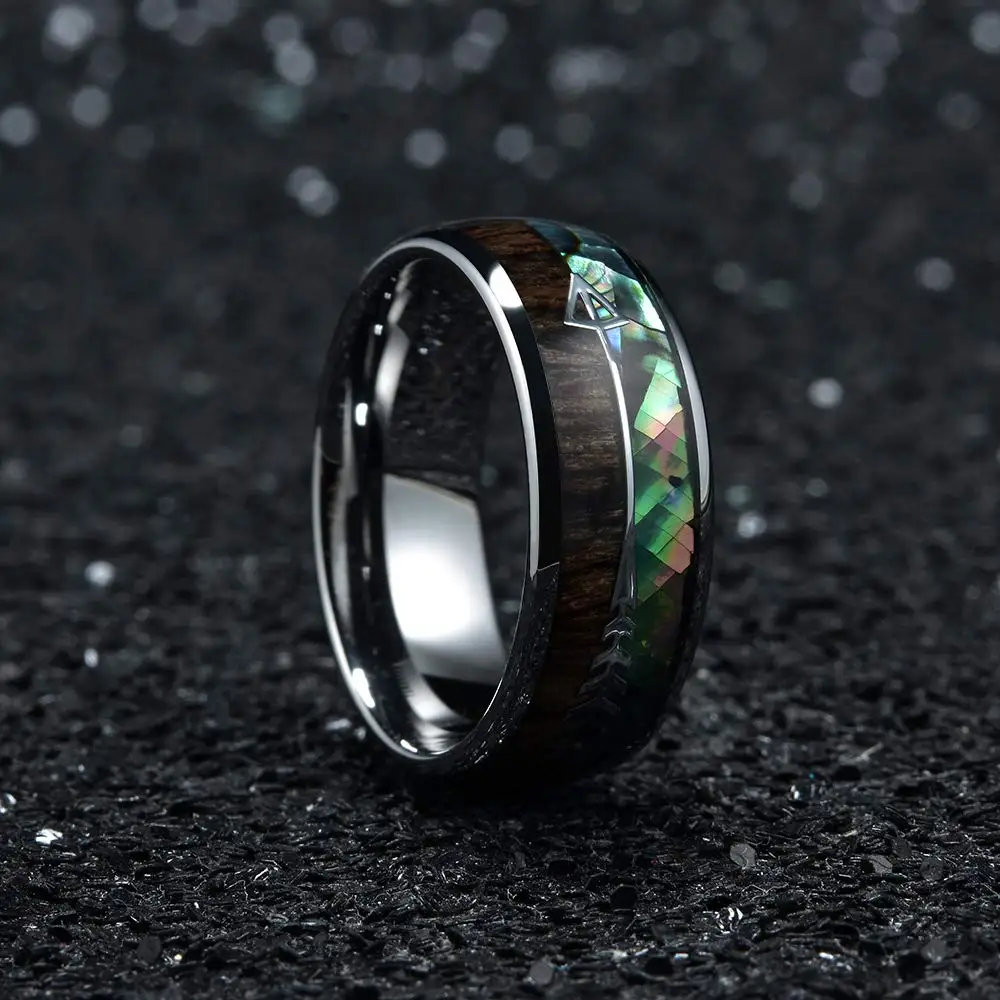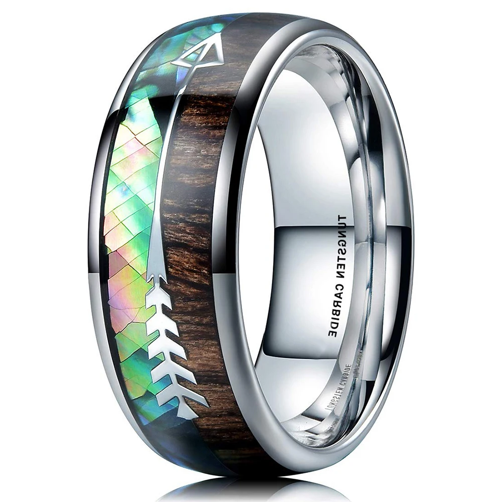 Кольца мужские черные вольфрамовые, свадебные стальные стрелы 8 мм, инкрустация КоА, деревянное красочное Абалон, ракушки для мужчин, свадебный браслет