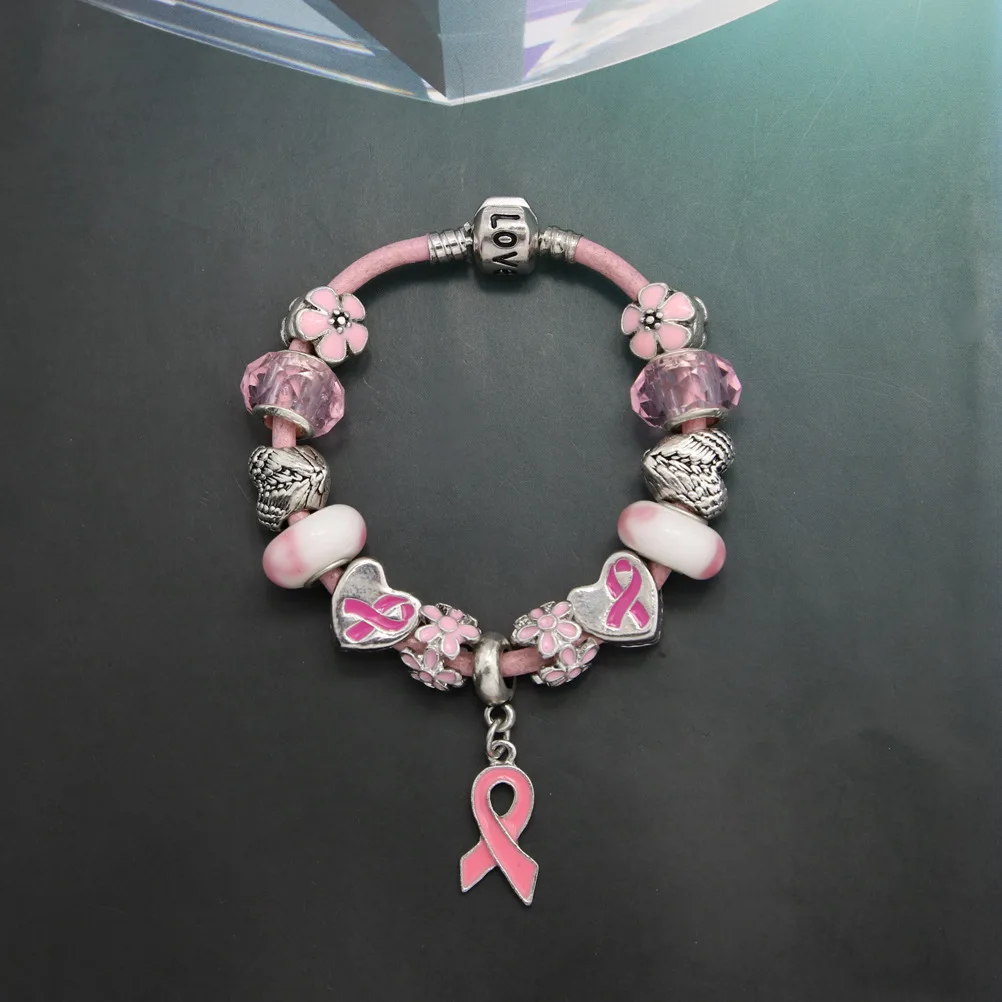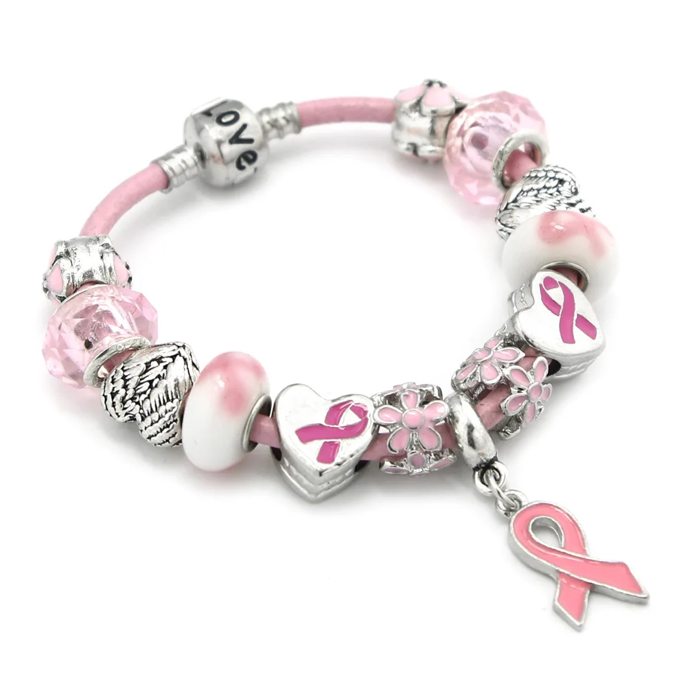 Item Namer:breast cancer awareness European style pink ribbon charm bracelet