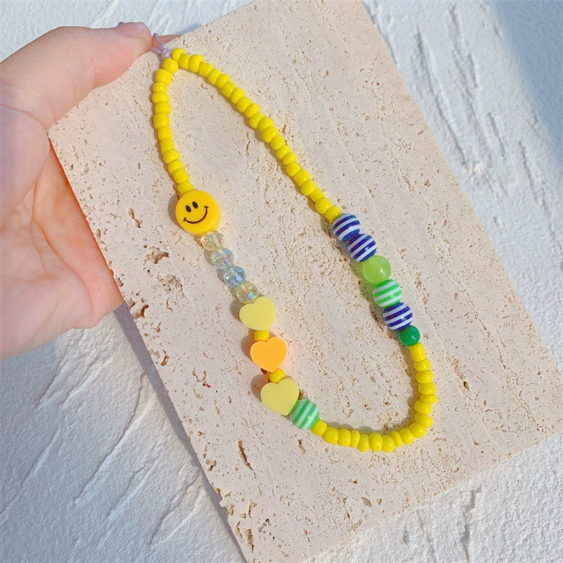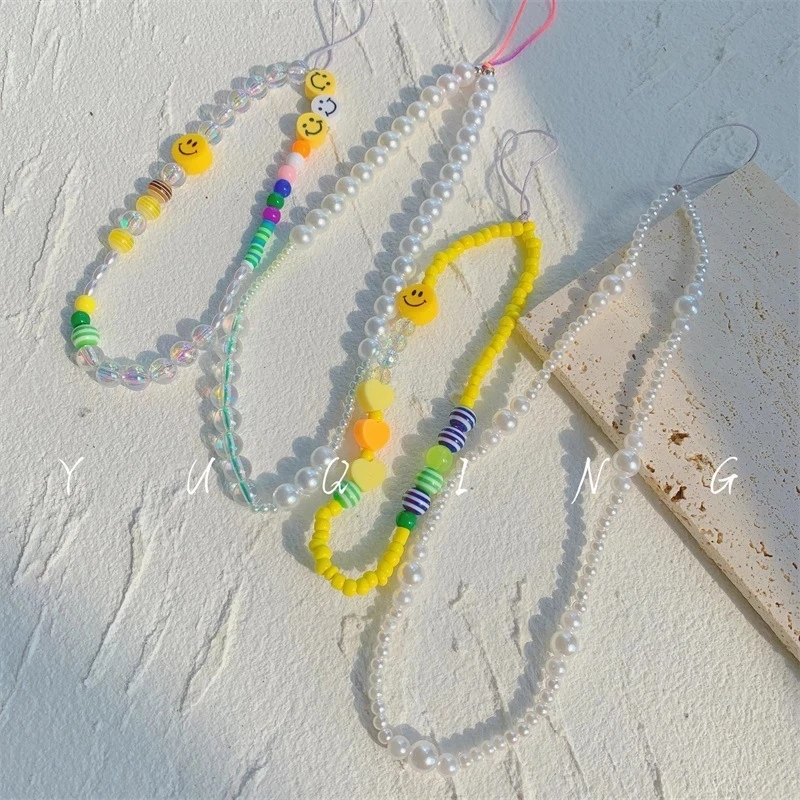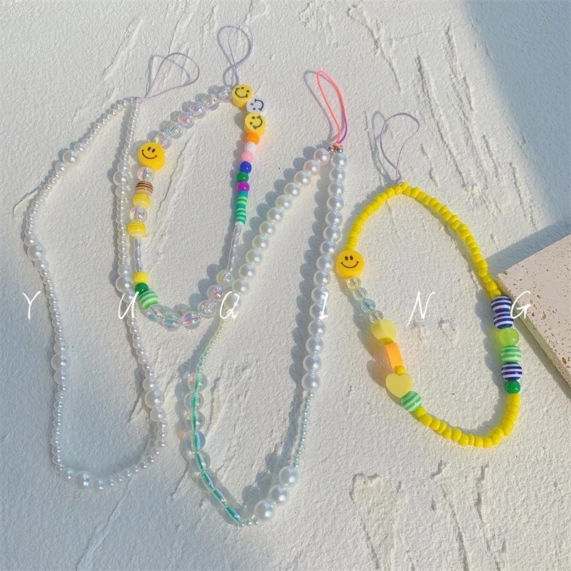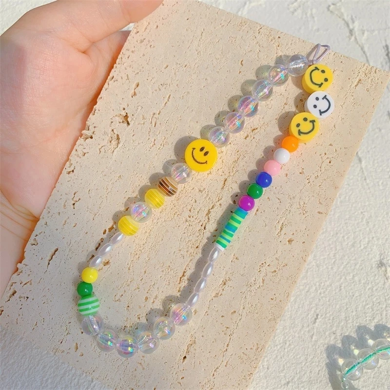 Новые богемные разноцветные мягкие керамические изделия ins со смайликом, жемчугом, бусинами, телефонный шнурок, акриловая женская искусственная цепь, ювелирные изделия