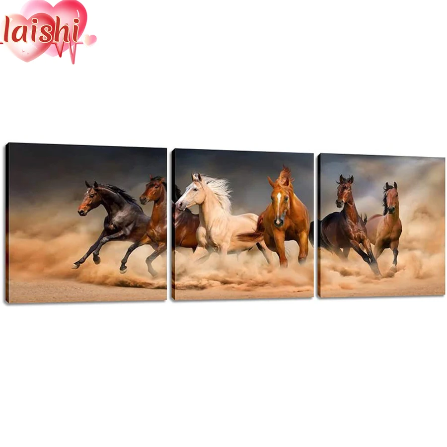 3 шт., алмазная картина бегущая лошадь