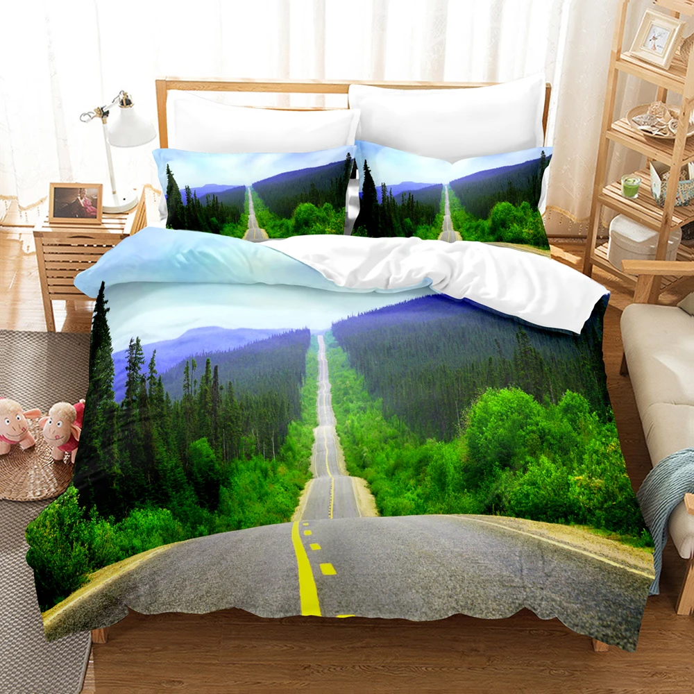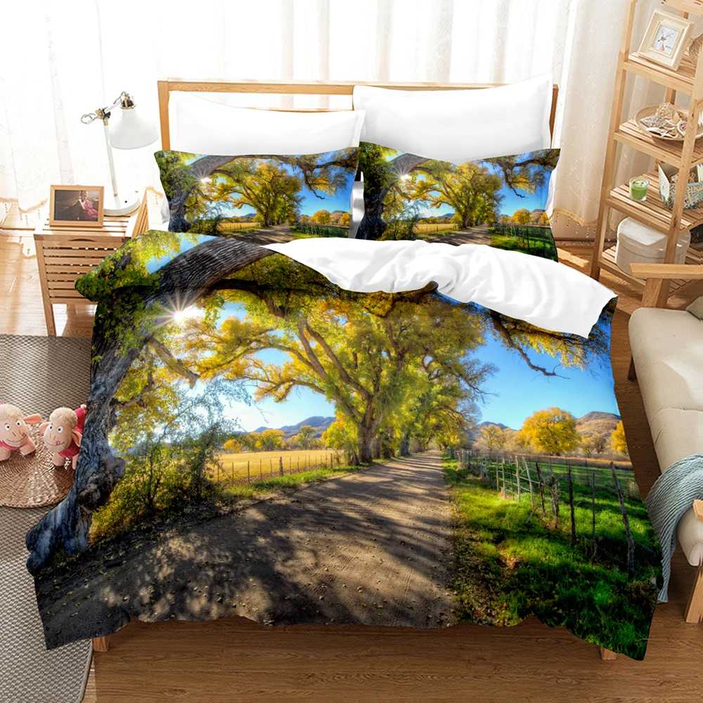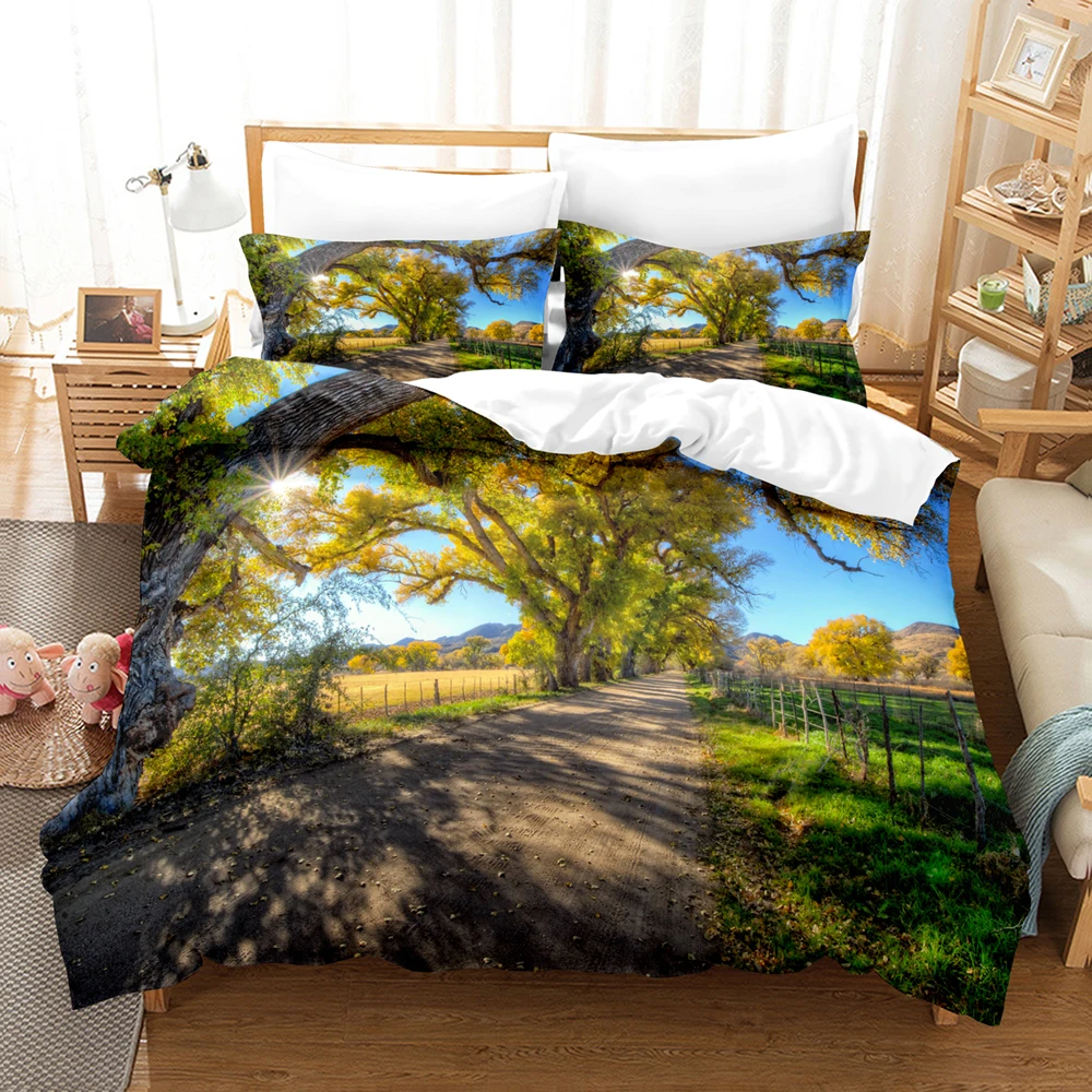 Комплект постельного белья Beauty Tree Road, односпальный, двуспальный, полноразмерный, с рисунком дерева, дороги, неба, Комплект постельного белья Aldult, комплект из двух предметов для детской спальни, 022