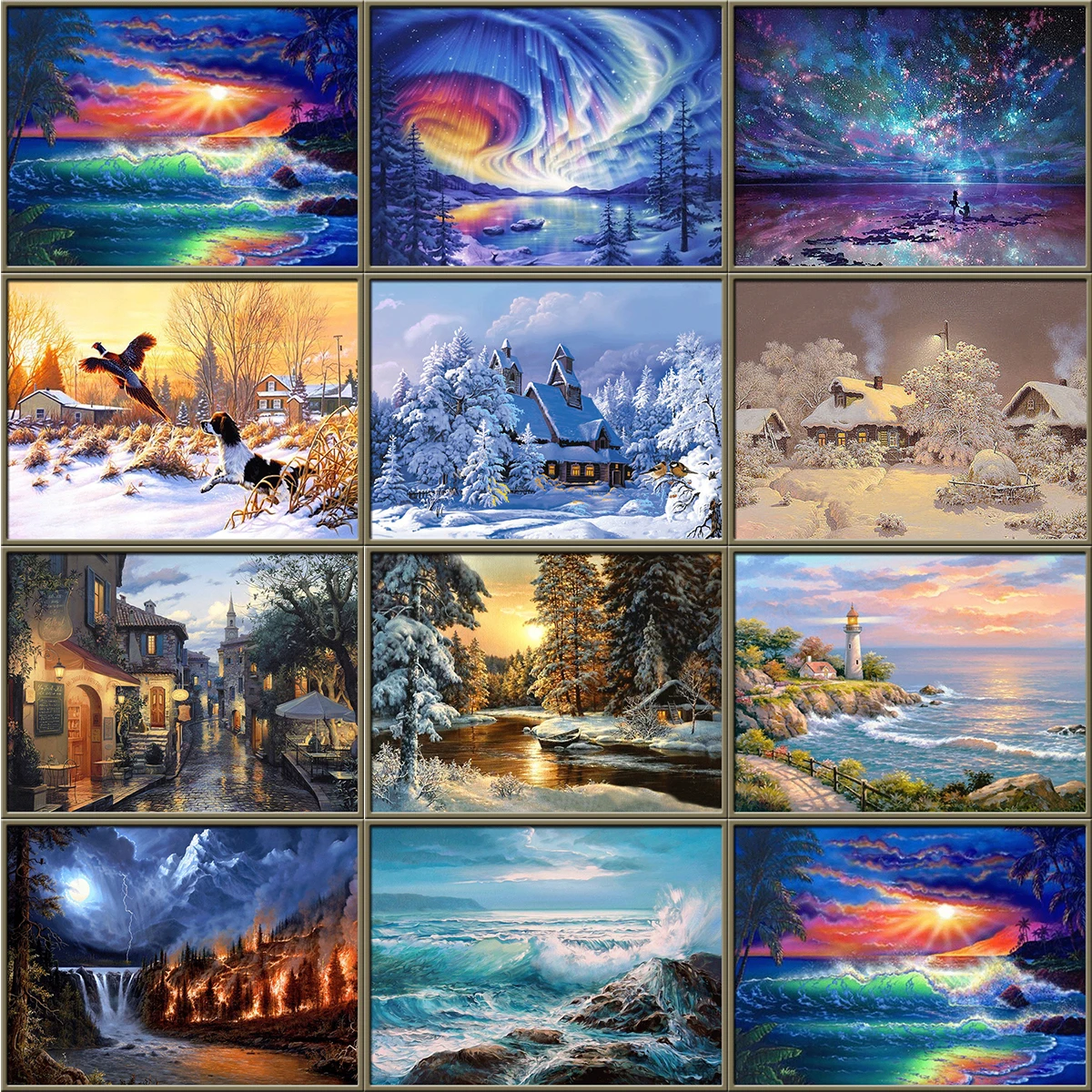Diy алмазная живопись пейзаж живопись 5d полный набор алмазной выши...