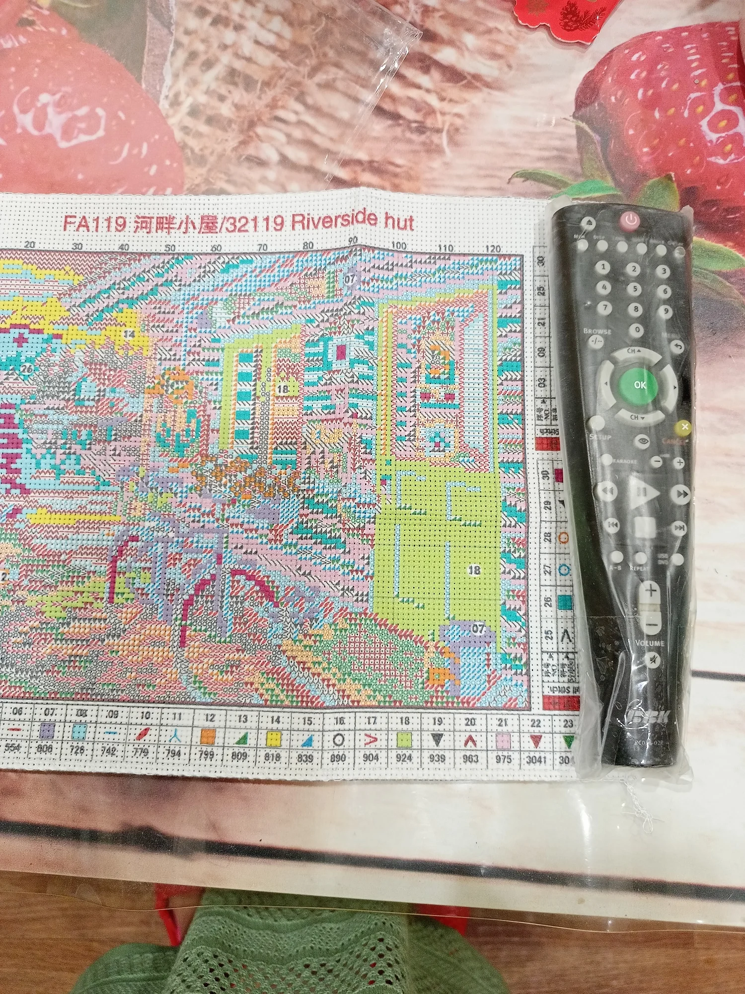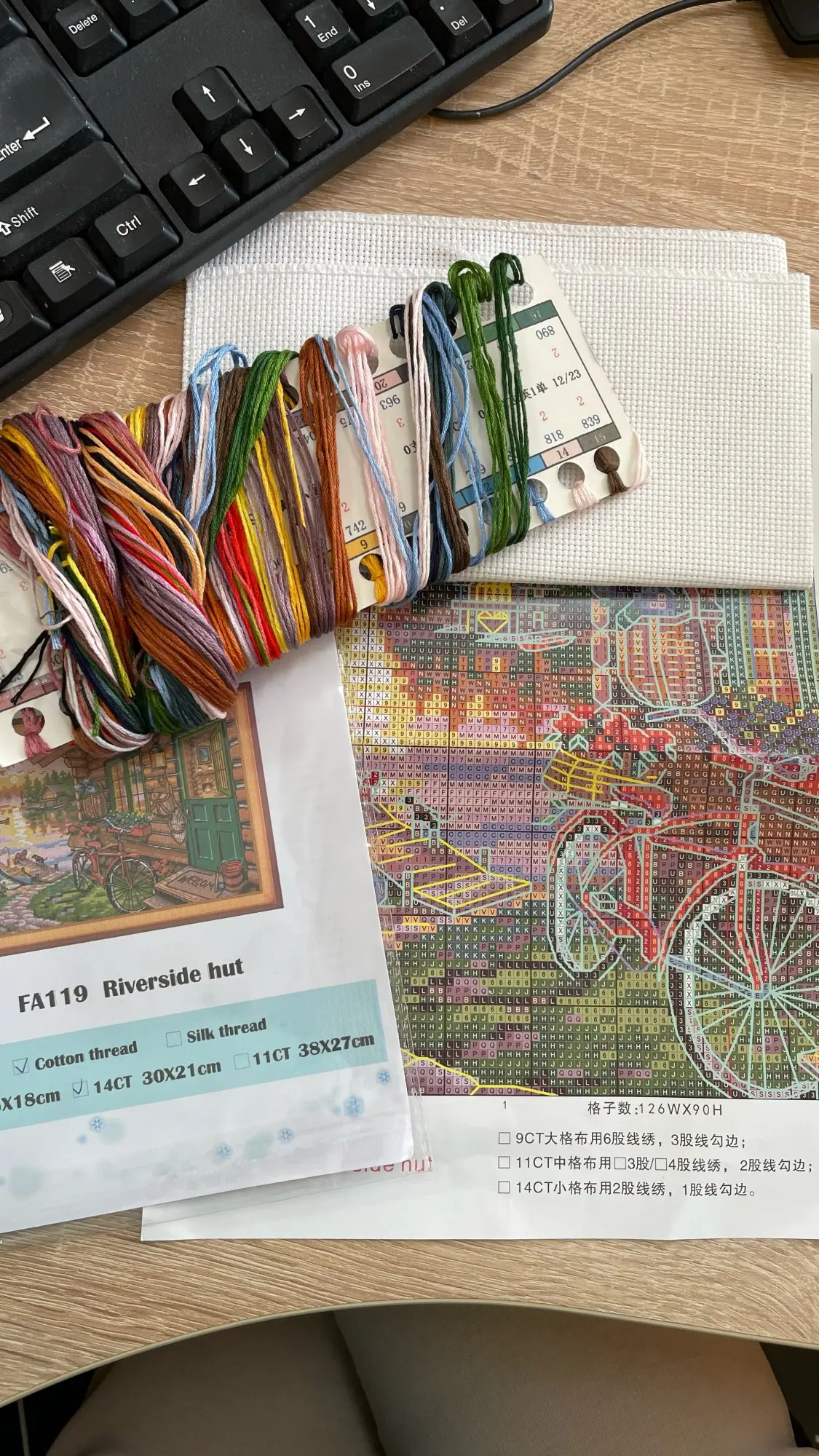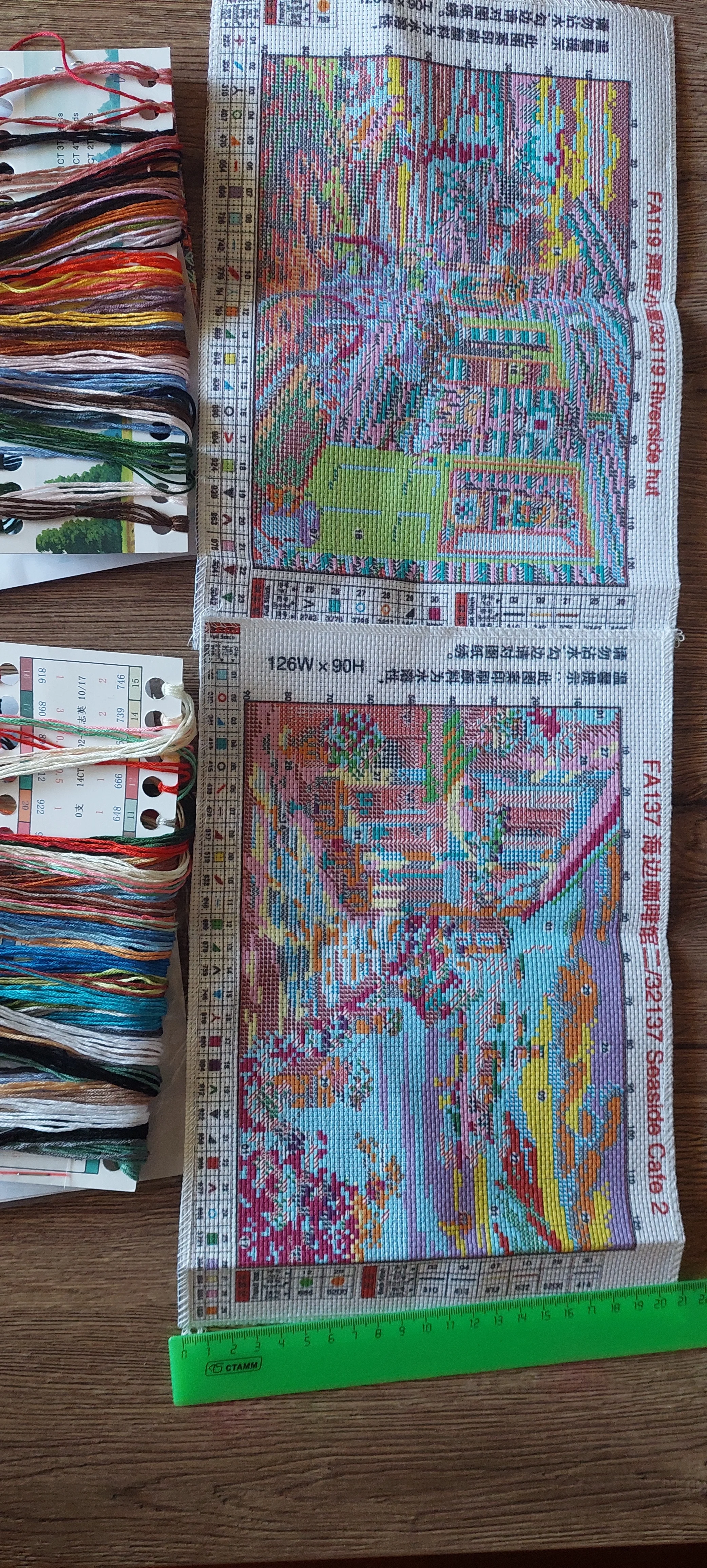 Заказывала вроде бы 14 каунт, пришёл набор на 18 каунте. Может быть я ошиблась. Буду менять канву. Надеюсь ниток хватит. Эти нитки для бэка на 18 толстоваты.