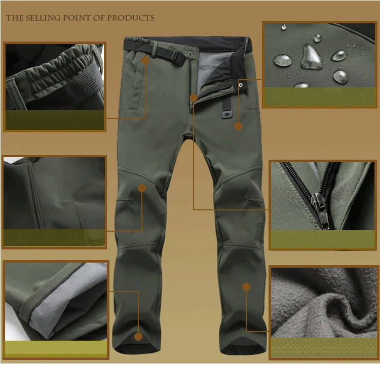Мужские Зимние флисовые водонепроницаемые брюки из мягкой кожи, охота, пеший туризм, рыбалка, альпинизм, треккинговые дышащие бриджи