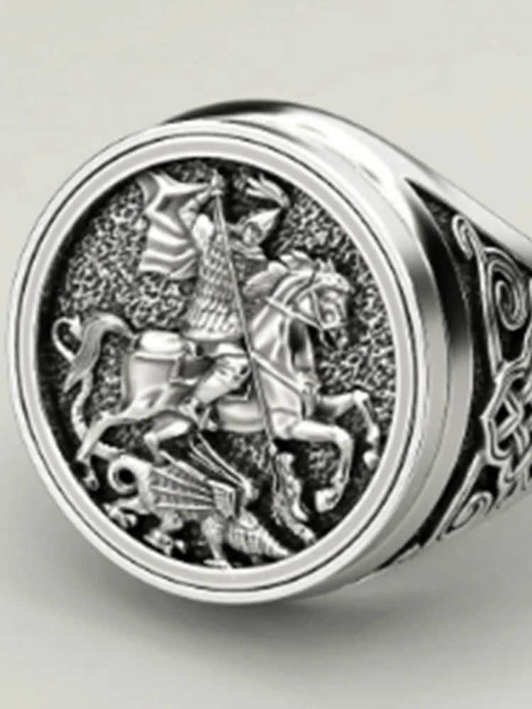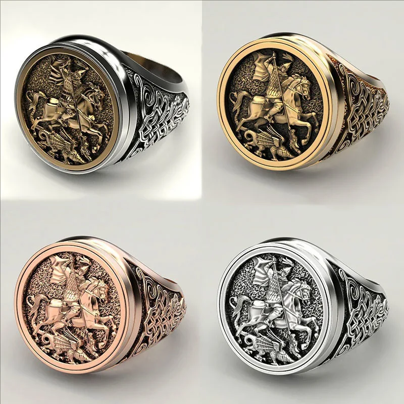 Кольцо мужское в стиле ретро, креативное модное роскошное портретное кольцо монаха, святой Джордж, для верховой езды