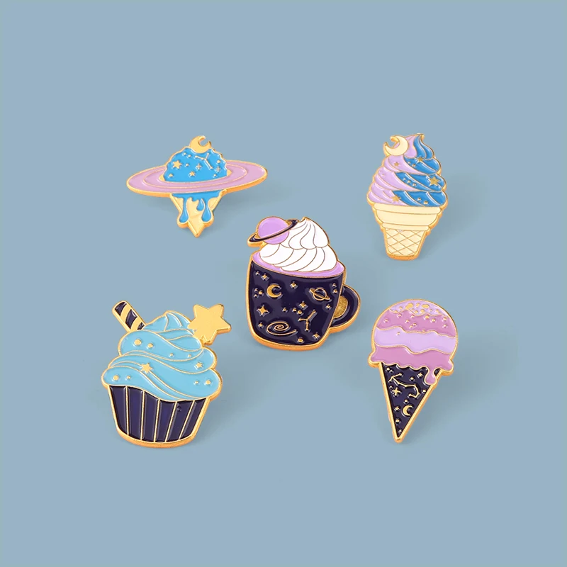 Мультяшные милые эмалевые булавки с мороженым планета звезды чашка ...