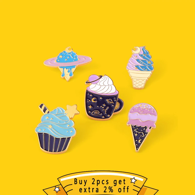 Милая эмалированная булавка с изображением мультяшного мороженого, коллекция планета, Фотосумка, шляпа, Детская Брошь для девочек, Подарочные ювелирные изделия, оптовая продажа на заказ