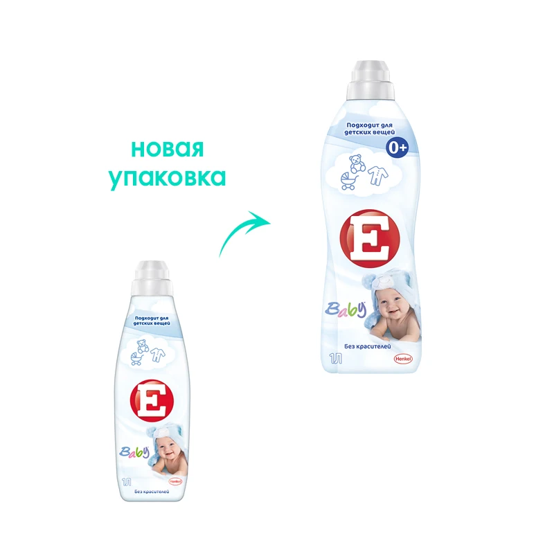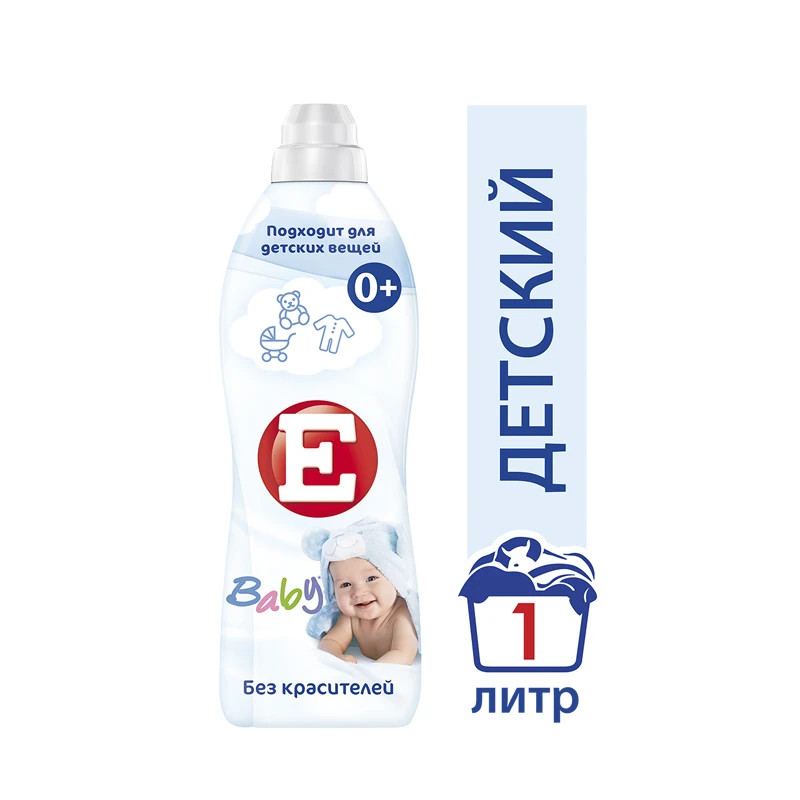 "Кондиционер для белья Е Детский 1000 мл бережно и деликатно ухаживает за детской одеждой. Благодаря современной щадящей формуле из катионных ПАВ и глицерина кондиционер обладает эффективными преимуществами.