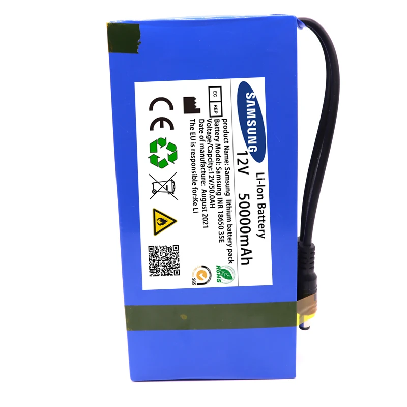 Новый комплект литий-ионных аккумуляторов 12 В 18650 50000 мАч, постоянный ток 12,6 в 50 Ач, аккумулятор с вилкой европейского стандарта + зарядное устройство в 1 А + кабель для шины постоянного тока