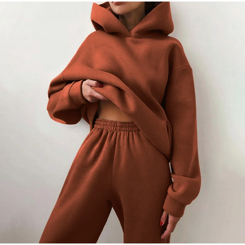 Женские Элегантные однотонные комплекты с длинным рукавом, теплые толстовки с капюшоном и длинные брюки, модные комплекты из двух предметов, женский спортивный костюм спортивный костюм женск костюм женский Брючные кост