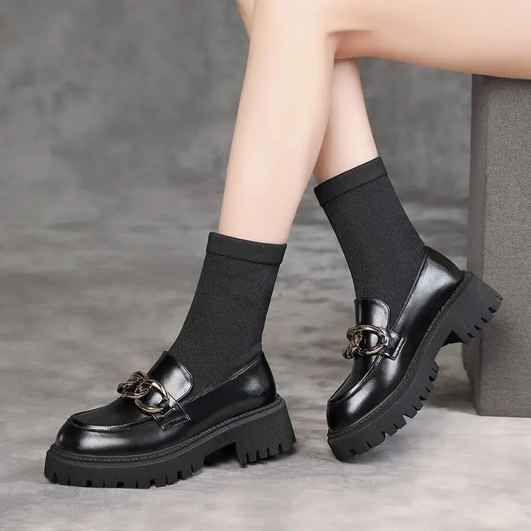 Женские туфли-лодочки из искусственной кожи, на платформе и блочном каблуке, с цепочкой и круглым носком, Размеры 35-40, 2021