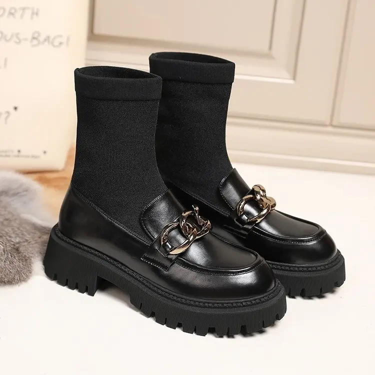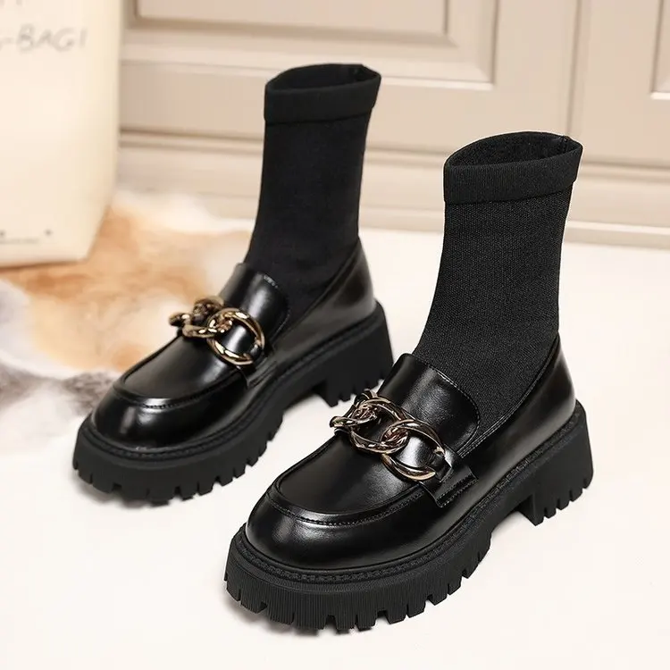 Ботинки 2021 женские модные ботинки на массивном каблуке облегающие...