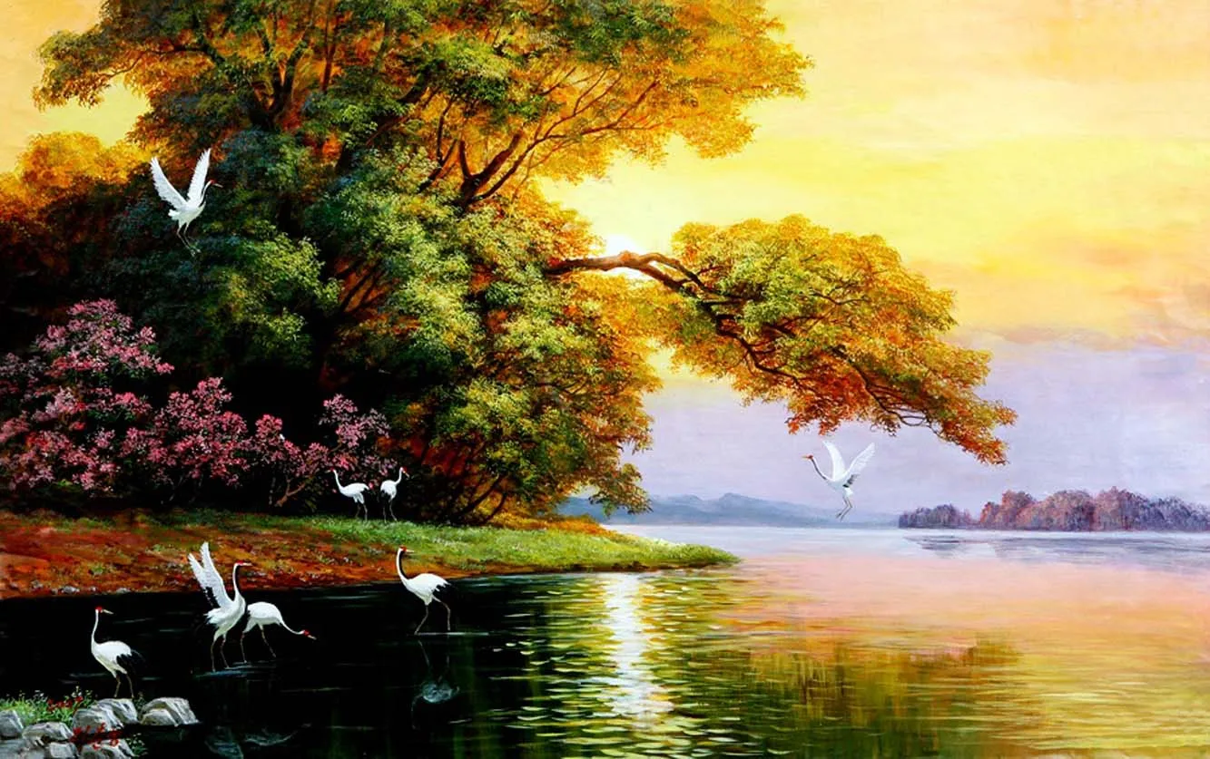 Алмазная живопись DIY5D, Мультяшные животные, пейзаж, Золотой Павли...
