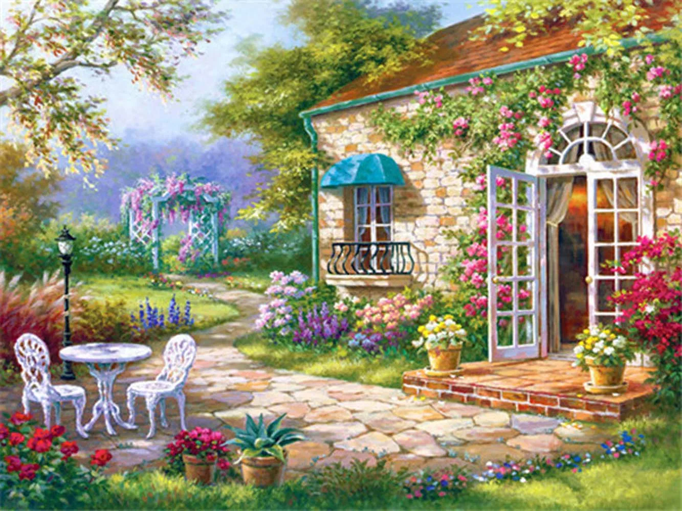 Алмазная картина 5D с изображением пейзажа, растений, цветов, вышив...