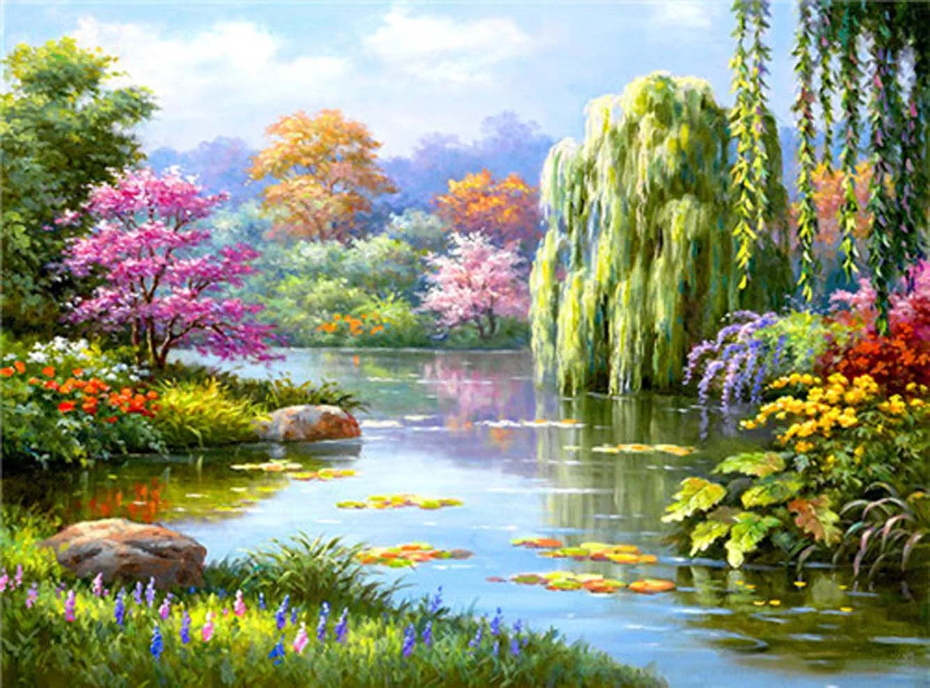 Алмазная живопись с пейзажем сделай сам на весну и лето, вышивка крестиком 5d, алмазная вышивка, мозаика, товары для дома, рождественские подарки