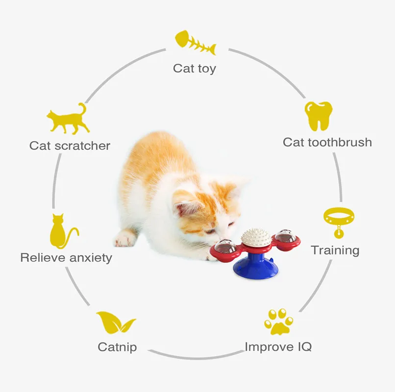 Игрушка для кошки, Интерактивная ветряная мельница, Забавный массажный поворотный стол, забавная вращающаяся ветряная мельница для кошачьей мяты светодиодный игрушка для чистки зубов