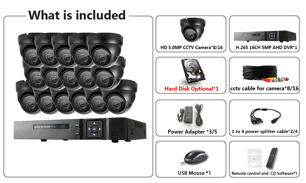 8/16 x HD 5.0MP Крытый Открытый ИК День ночного видения атмосферостойкие камеры;