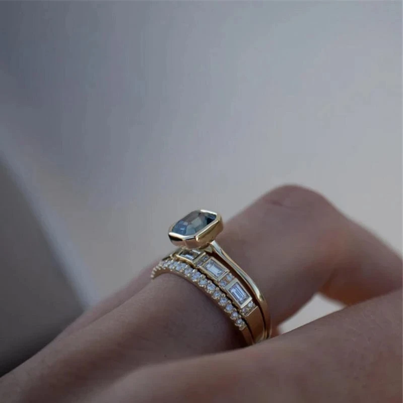 Набор обручальных колец с кристаллом кислотного синего цвета, 3 шт.компл., для женщин, унисекс, золото кольца с покрытием, мужские ювелирные изделия, подарок на День Св. Валентина