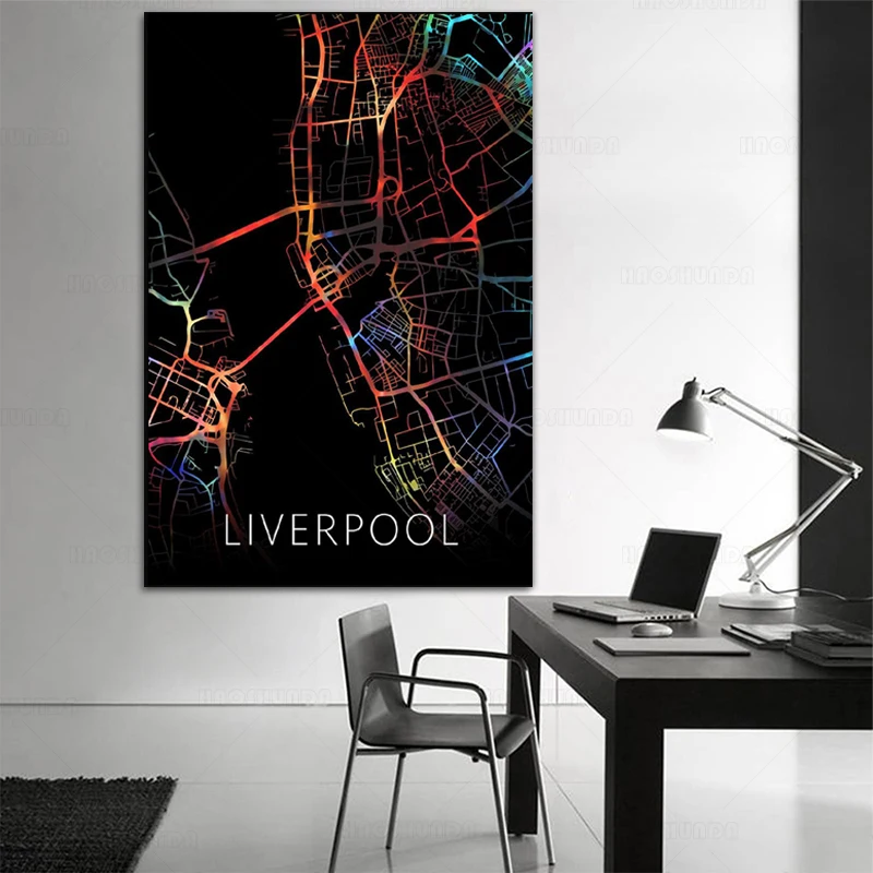 Ливерпуль, Англия, Великобритания, акварельные цвета, черная карта города, холст, настенный художественный принт, современный плакат, настенные картины, декор для гостиной