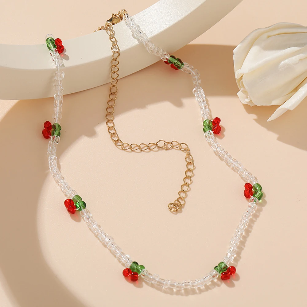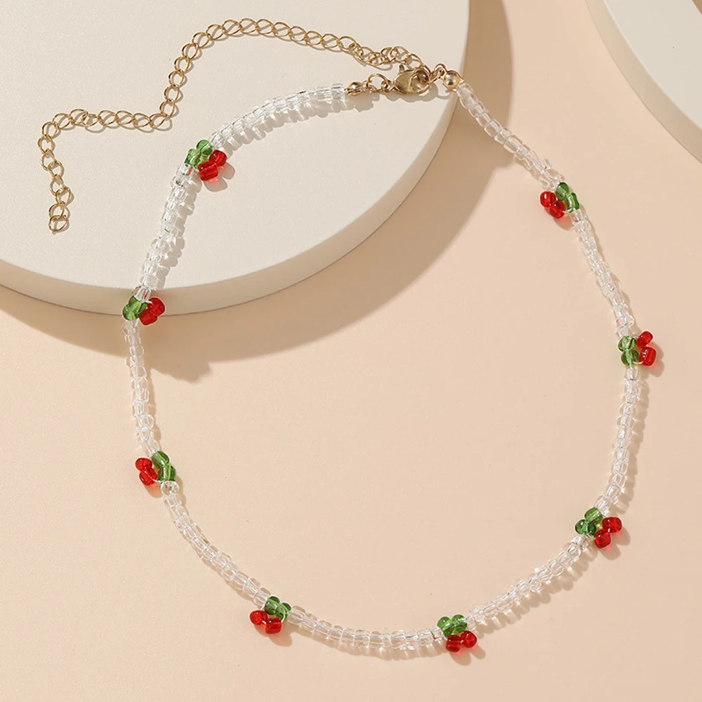 Богемное прозрачное колье-чокер с бусинами и вишенками для женщин и девочек, подарок, Милые Пляжные вечерние украшения с бусинами, эффектный воротник