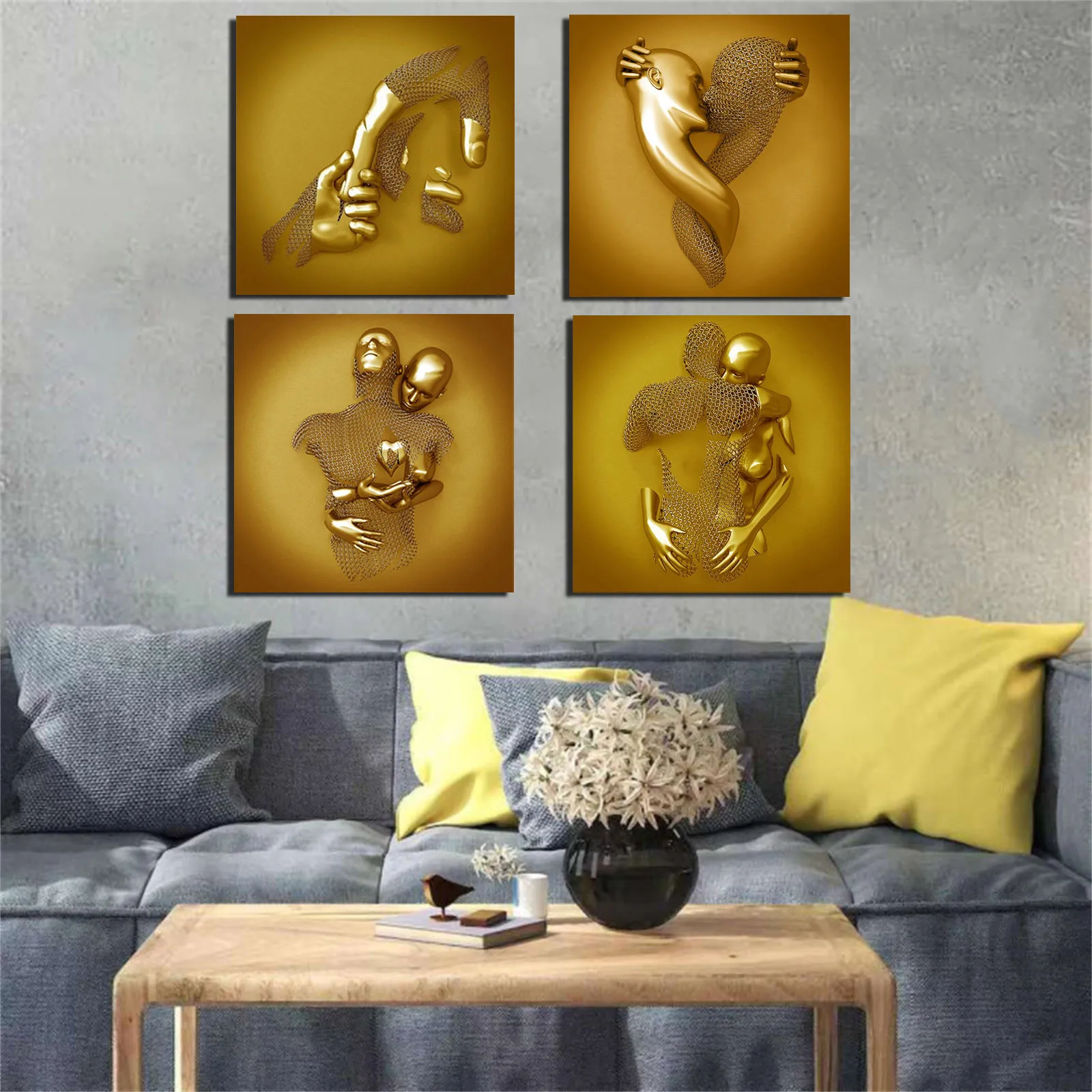 3d настенное украшение в виде сердца, Металлическая статуэтка, Художественная Картина на холсте, подвесная Картина на холсте без рамки, украшение для спальни