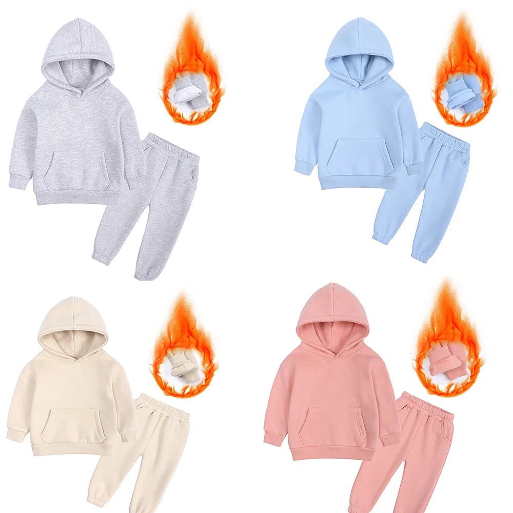 Осенне-зимний хлопковый детский спортивный костюм с флисовой подкладкой, толстовка с длинным рукавом, спортивные штаны, теплая спортивная одежда для мальчиков и девочек 1-12 лет