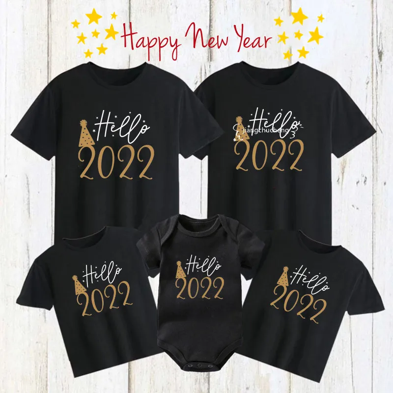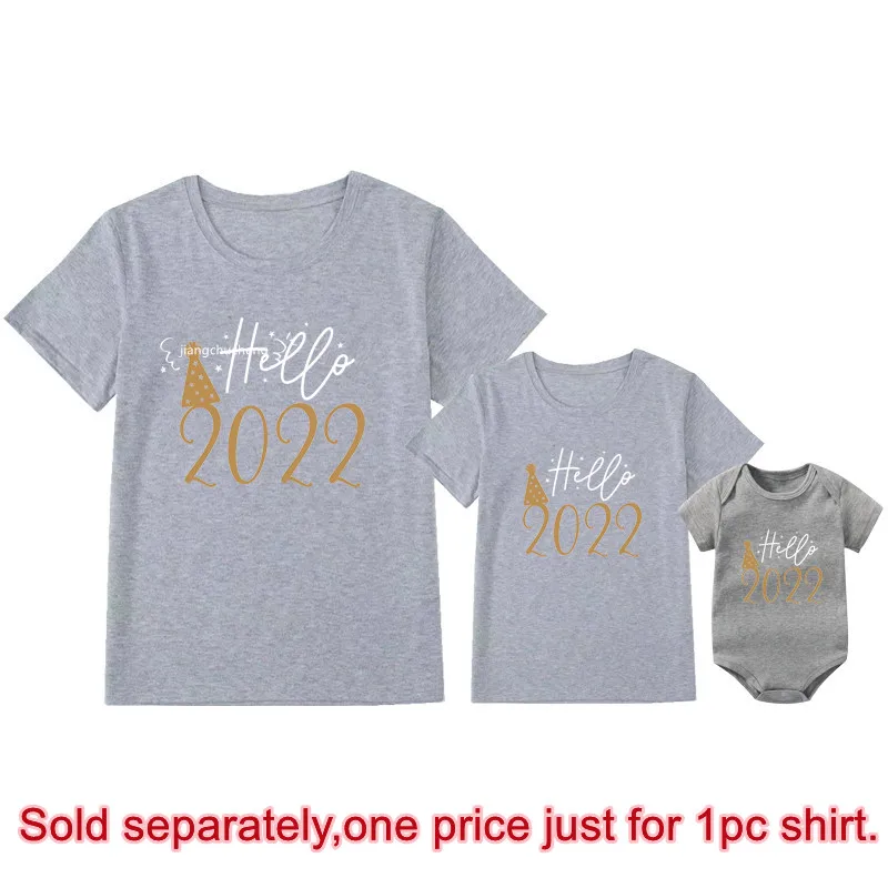 Одинаковая одежда с принтом Hello 2022 для всей семьи, хлопковые футболки для семьи, для папы, мамы и меня, детские комбинезоны, одежда для нового года