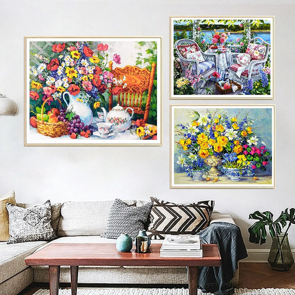 5D алмазная живопись, Садовый цветок, Алмазная мозаика, Набор для вышивки крестиком, искусство стразы, картина, сделай сам, ремесла, украшение для дома