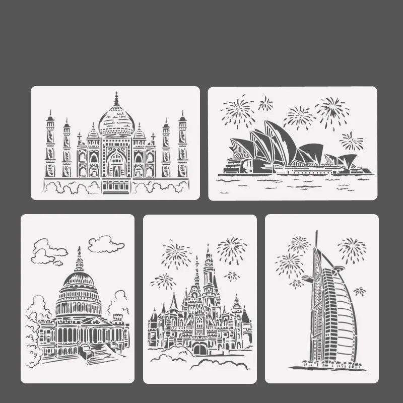 5 шт.компл. шаблон для рисования башни парусника трафарет для рисов...