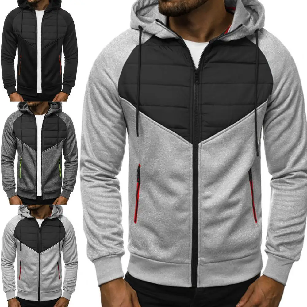 Мужская куртка с капюшоном и длинным рукавом, на молнии