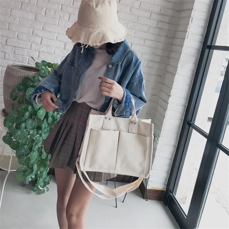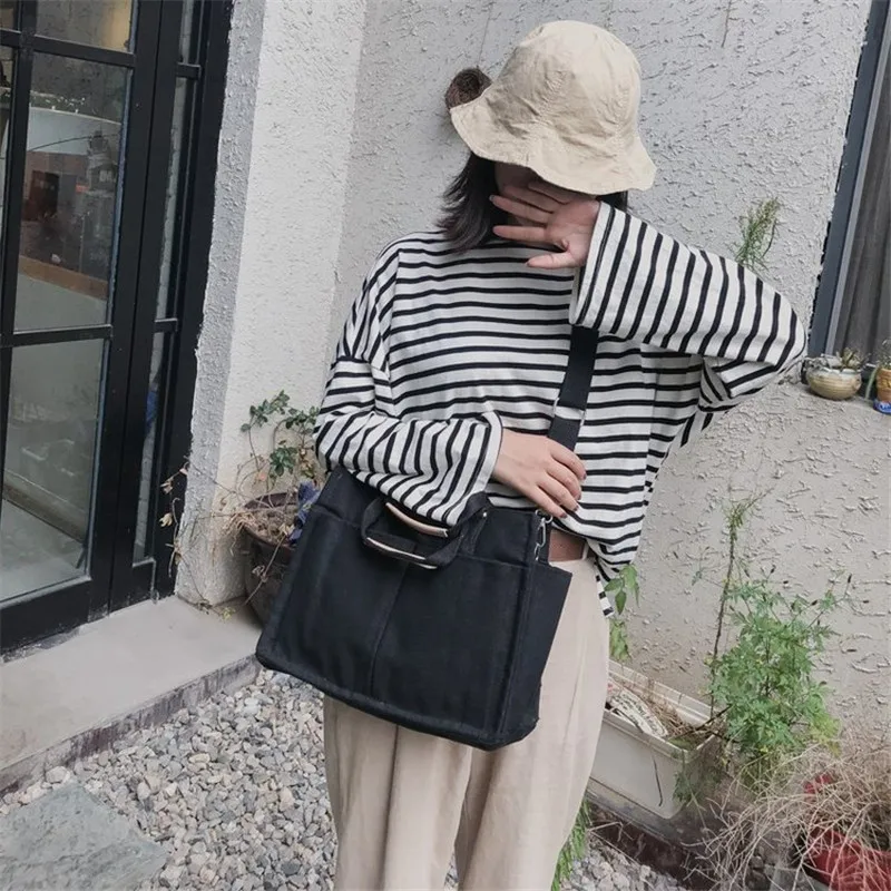 Повседневные вместительные сумки через плечо для женщин, холщовые сумки-тоуты через плечо, женская сумка-мессенджер для студентов, кошелек