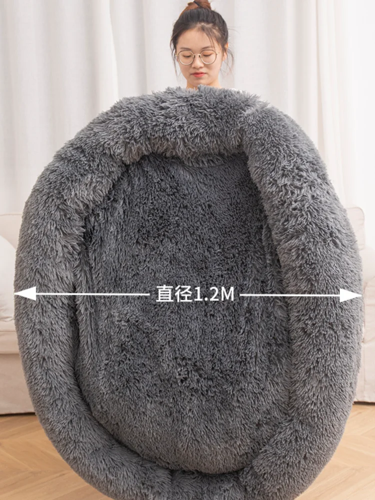 Круглая длинная плюшевая кровать для собак, съемный моющийся коврик...