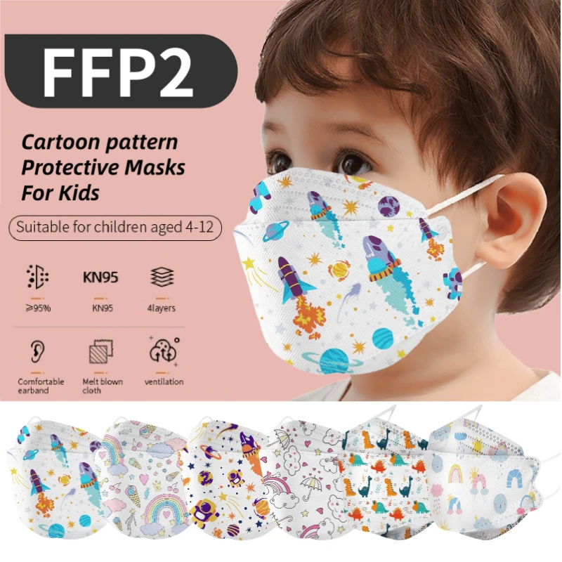 102050 шт., Детские Мультяшные маски Ffp2, 4 слоя, фильтрация 95%