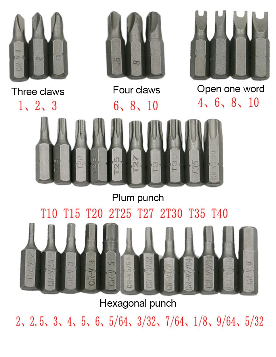 Тип: полый/твердый набор отвертокМатериал: углеродистая стальКоличество: 33 шт./компл.Четыре размера бит: 6 мм, 8 мм, 10 ммРазмеры гаечного ключа: 4 мм, 6 мм, 8 мм, 10 ммТри-крыла Размеры: 1, 2, 3Размеры шестигранных бит: 5/32 '', 9/64'', 1/8 '', 7/64'', 3/32 '', 5/64''Шестигранными битами Размеры: 2 мм, 2,5 мм, 3 мм, 4 мм, 5 мм, 6 ммРазмеры Бит Torx: T10, T15, T20, 2T25, T27, 2T30, T35, T40Размер шатуна: 6,0*0,63*0,63 СМ/2,4*0,3*0,3''Размер изделия: 6,8*4,8*2,9 см/2,7*1,9*1,1''