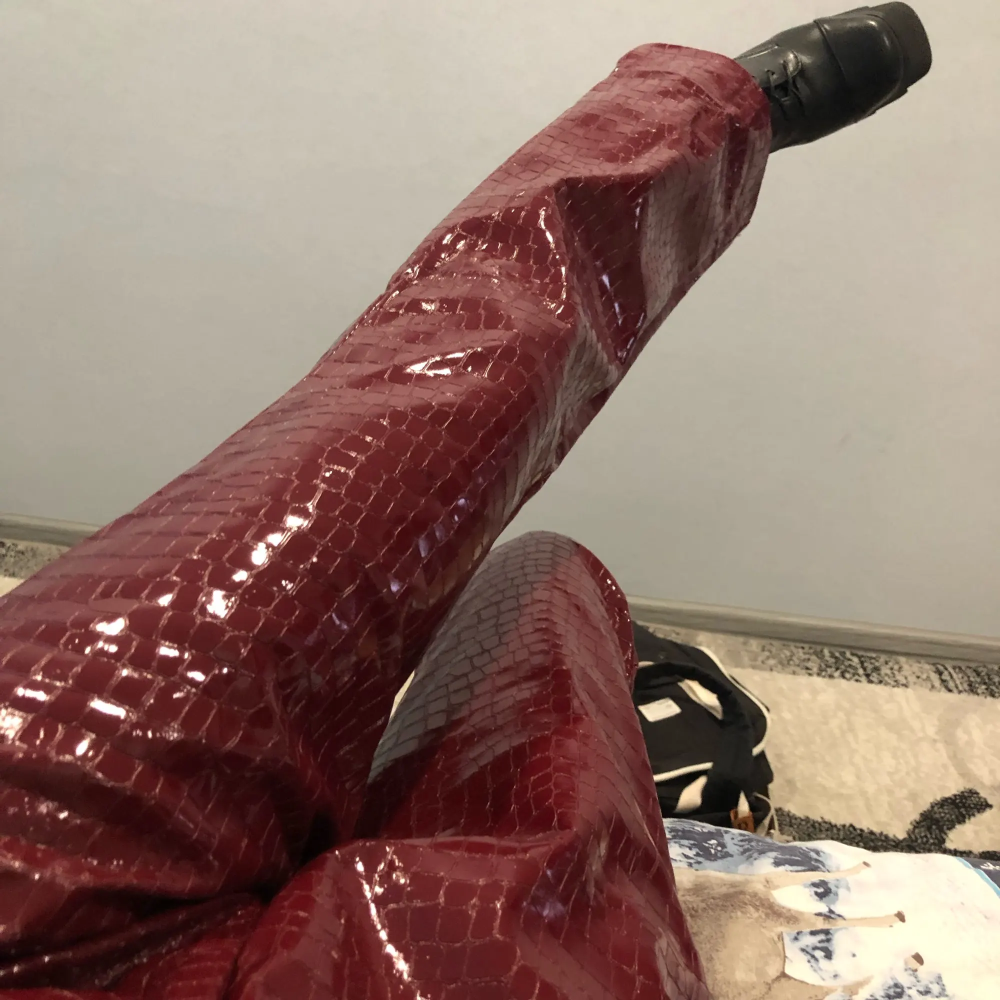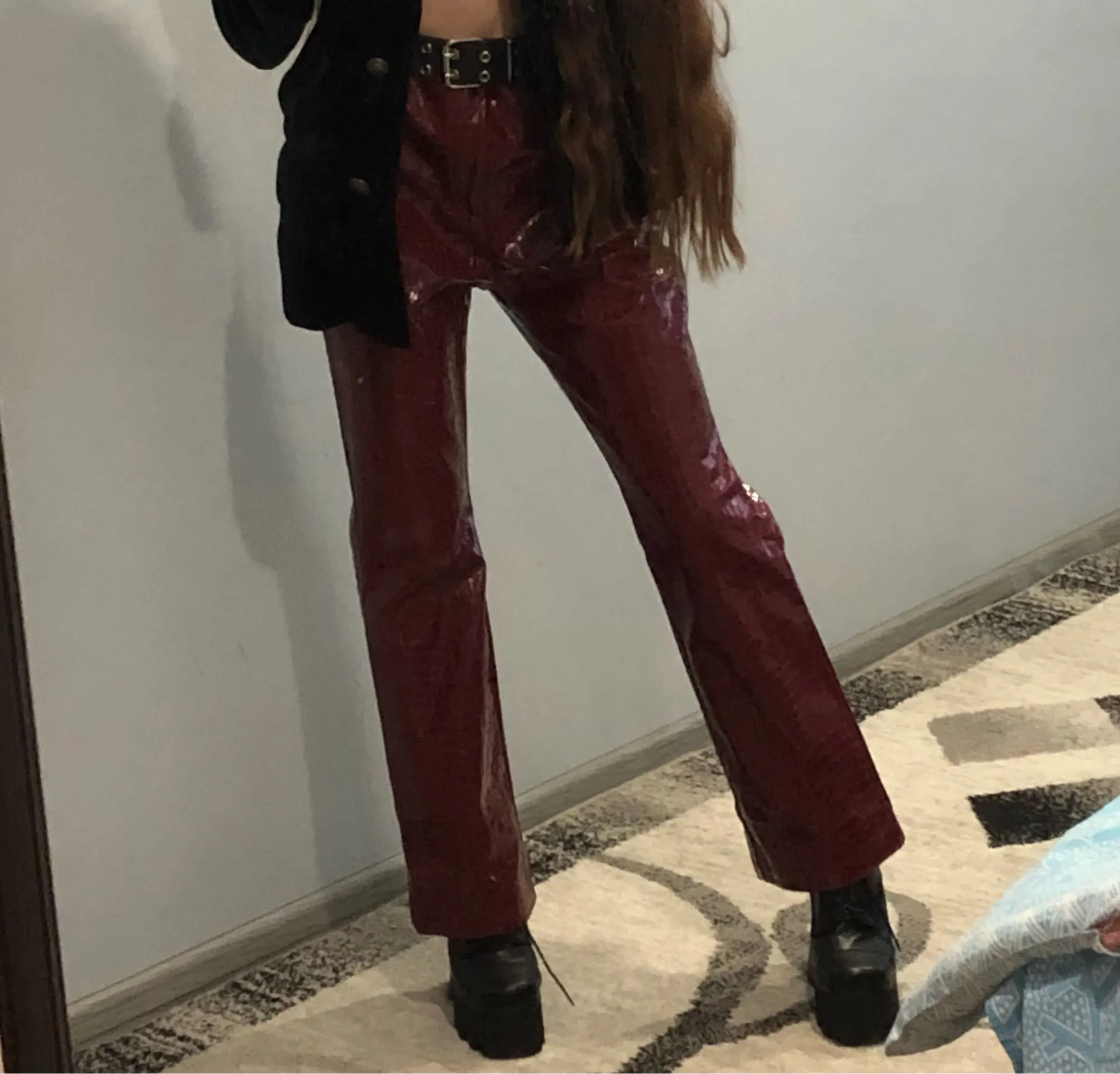Я взял расклешенные ноги падают на землю. Я разочарован, потому что это меня устраивает, но я измеряю 1 м62 эти штаны были разработаны на человека по крайней мере 10-15 см больше. Обувь с каблуками размером 8 см. Штаны скоро повредят Жаль, что это очень красиво